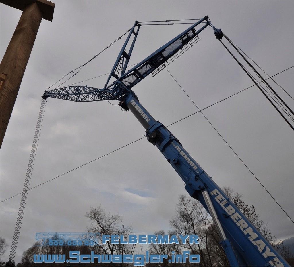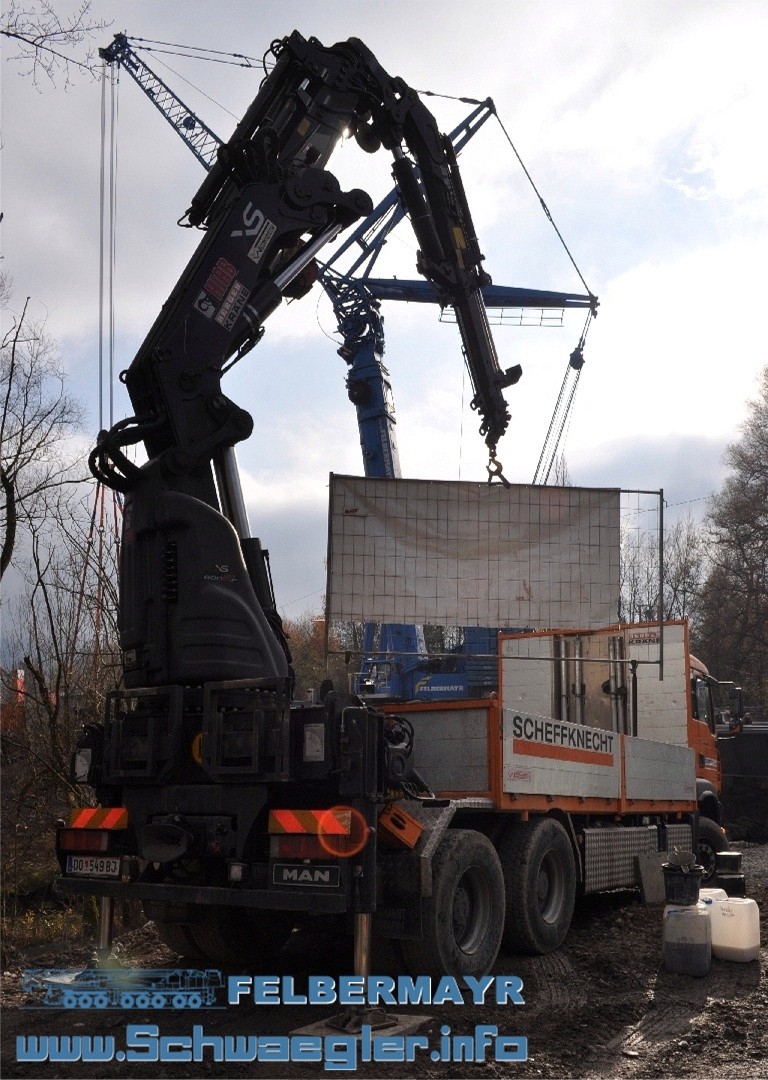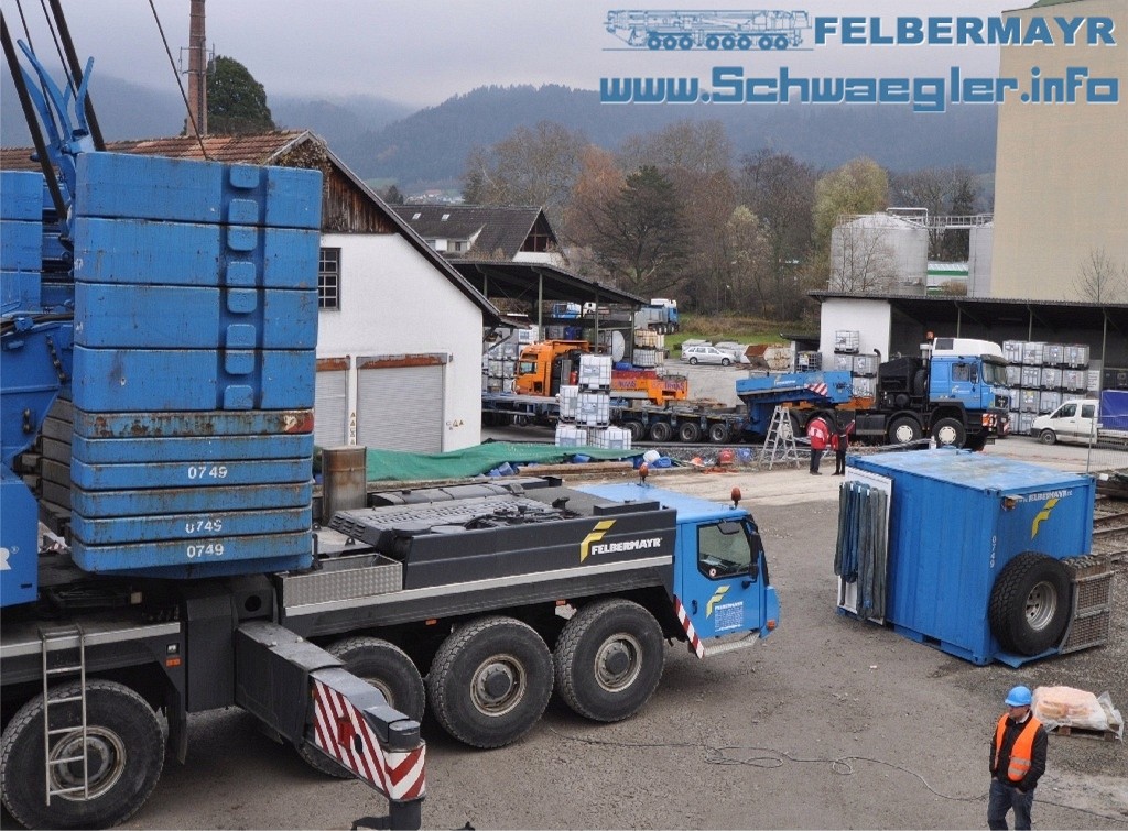 Ich war am Freitag nach der Arbeit noch schnell nach Österreich gefahren und sah direkt an der Grenze einen Felbermayr Auflieger mit dem Anlenkstück der Wippe für einen LTM 1500. |